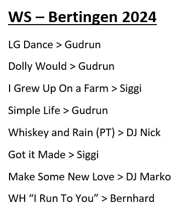 Choreo: Siggi Güldenfuß; 32/2; Musik: Tanya Tucker - The List